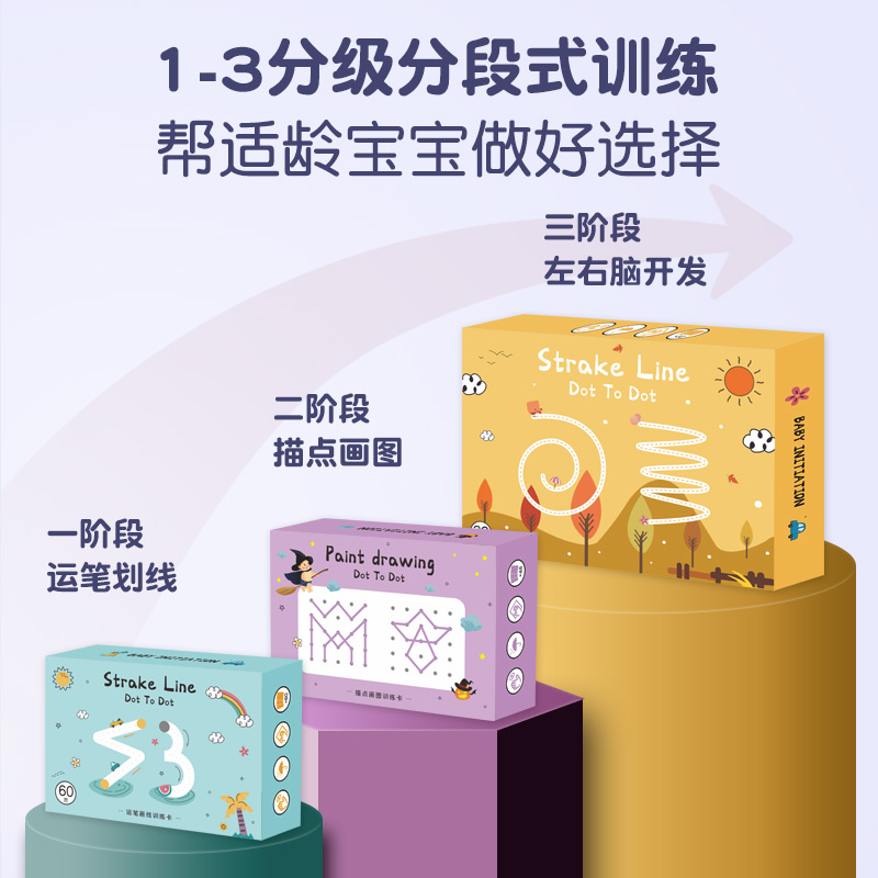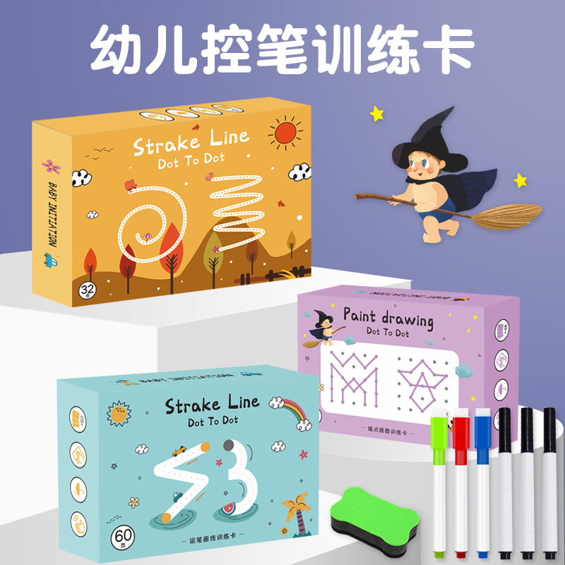 Pen training (60 pages) Point drawing (48 pages) Left and right brain development (32 pages) A full set of pen training 3 sets of strokes experience packs (20 pages) Lite