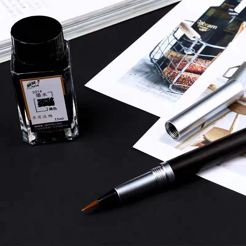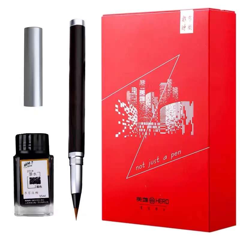 Hero Pen 2069 Type Brush Soft Pen Wolf Milli Pen Can Add Ink Students Beginner Practice Words Small Letter Calligraphy Pen Portable and Milli Adult Scribble Pen Gift Set Soft Head Beautiful Pen Customization