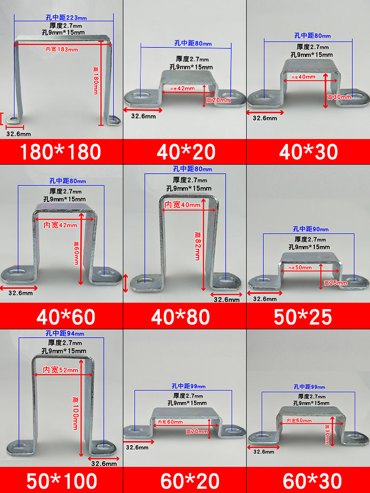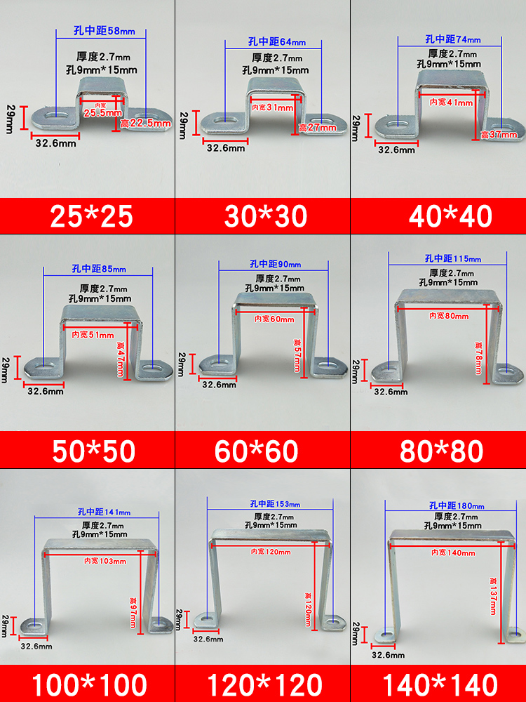 Galvanized several-shaped fixing parts U-shaped corner code square tube card right-angle buckle square hoop custom bracket 90 degrees thickened