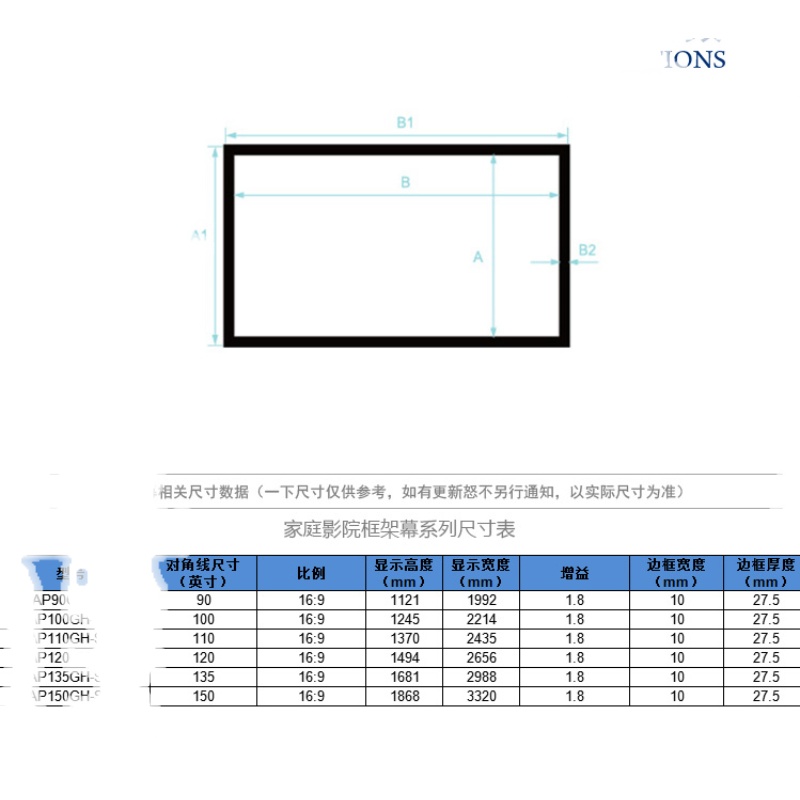 Plaeisen Puressen AP120WH3 100 inch frame curtain No protection corner 1CM narrow border grey grey white curtain-Taobao