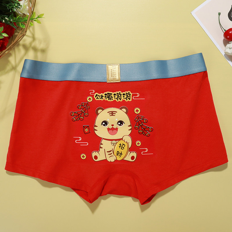 New Year's Year's Big Red Men's Panties Flat Pants Modale Cotton Tiger Married Men's Four-Glants