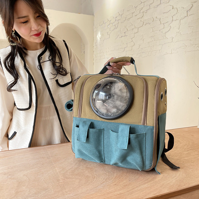 Cat canvas backpack large-capacity cat bag chest out portable pet bag space pet cabin dog bag