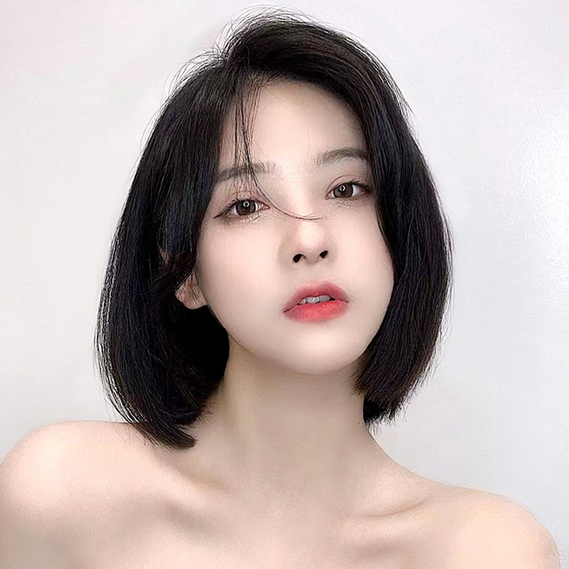 Wig women's short hair parted bangs fashion new full headgear natural fluffy real hair full real human hair wig set