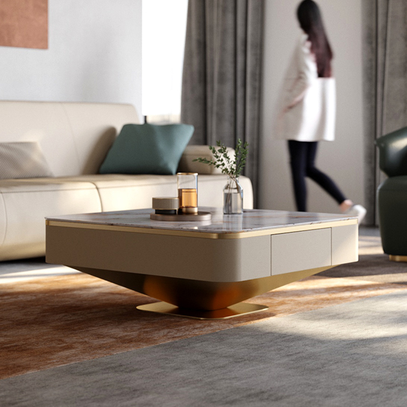 Light luxury slate square size coffee table combination villa living room high-end net red style modern minimalist luxury stone side table