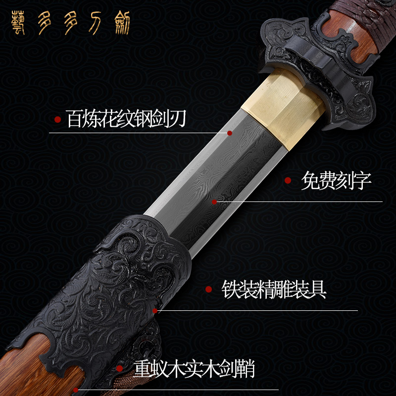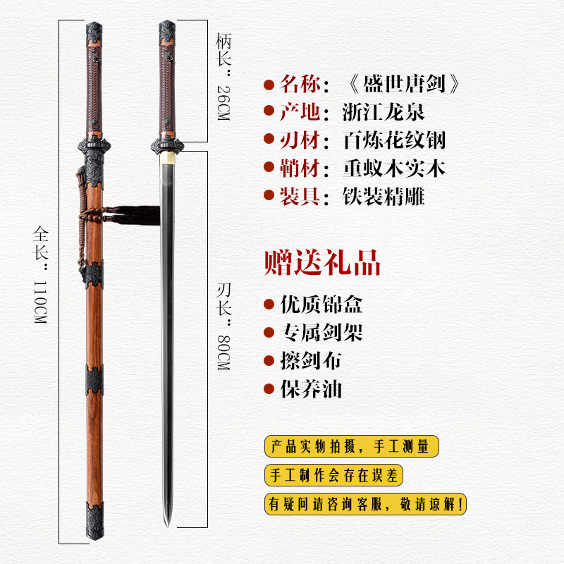 Longquan one Tang horizontal knife pattern steel Han sword long section Tang sword sword self-defense hard sword town house cold weapon unedged
