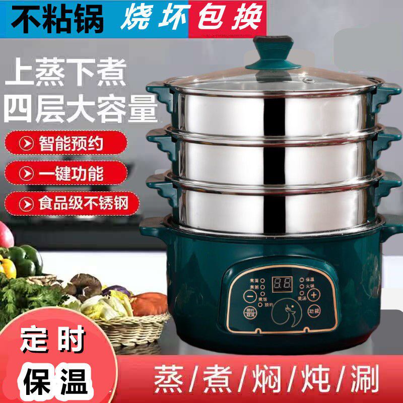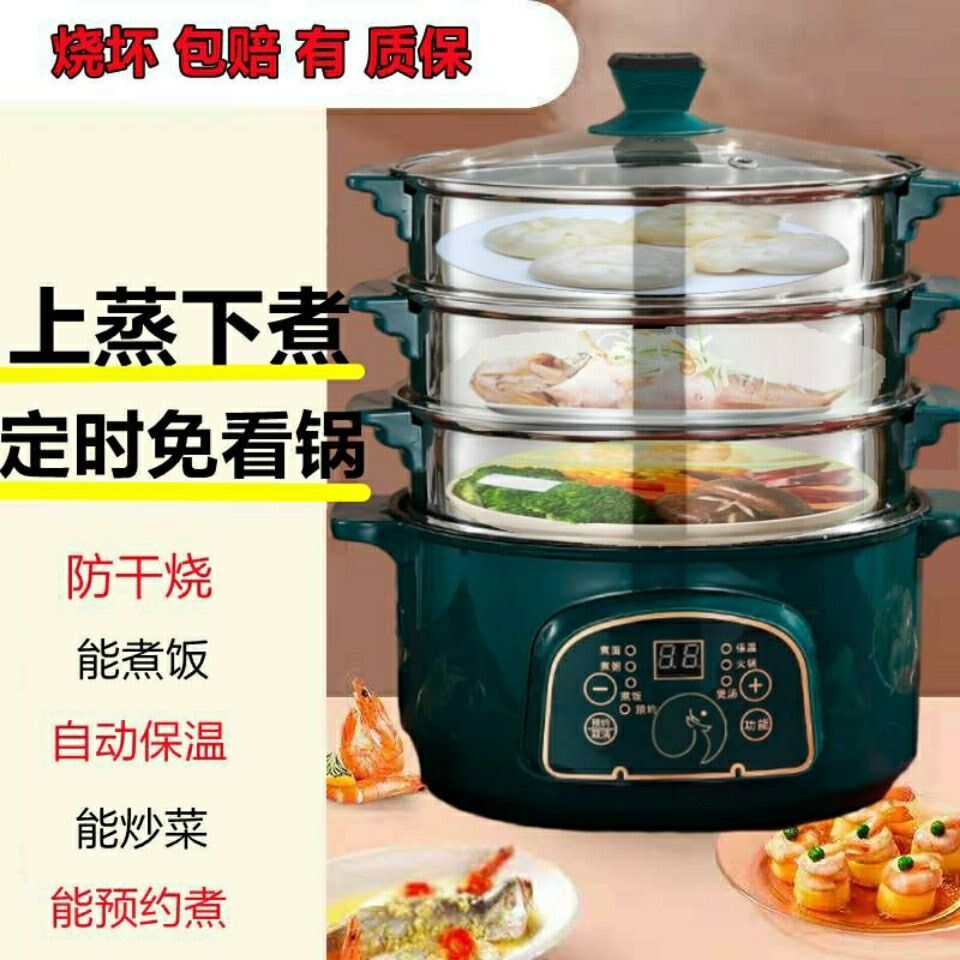 Steamed Buns Electric Steam Boiler Multilayer Home Multifunction Appointment Three-layer Timed Electric Hot Pot Quick Cooking Pan Multilayer Intelligence