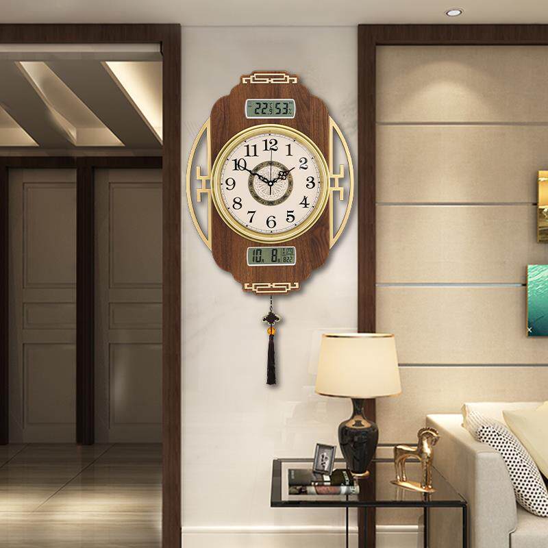 Hanging Clock Living Room Silent Hanging Watch Home Atmosphere Quartz Clock Chinese Style China Wind Fashion Hanging Wall Brass Gear Watch