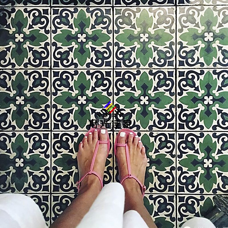 Moroccan retro green flower brick folk sleeping dressing room small flower tiles 200x200 terrace matte matte tiles