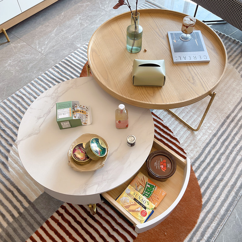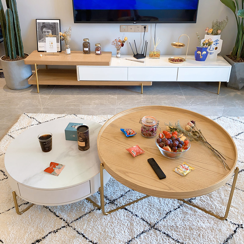 Nordic ins style round slate coffee table simple modern living room golden light luxury storage log color combination