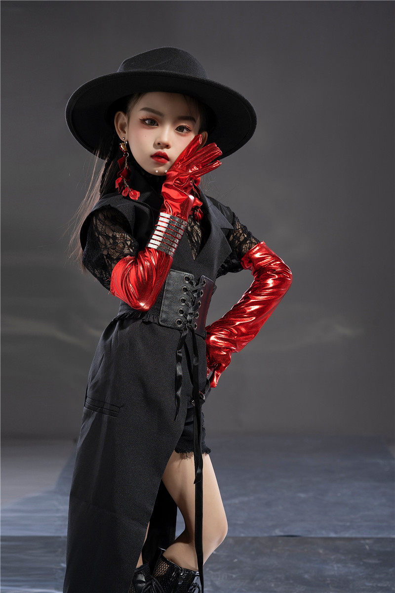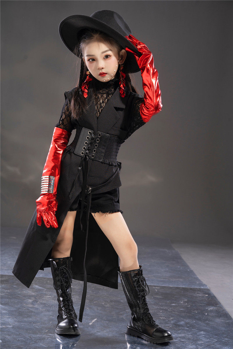Bully Black Asymmetrical Suit Children Model T Walk Show Girl Handsome Fashion Show Suit Surge Suit New