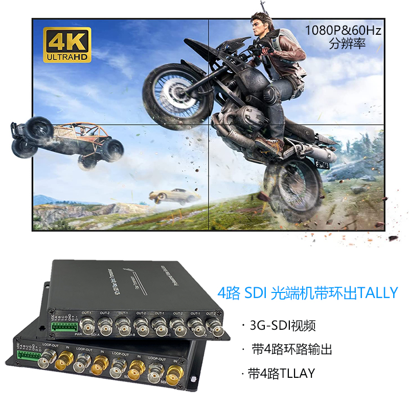 Radio and television 4-way SDI optical end machine HD 3GSDI fiber optic extender 4 points 8 with ring out with 4-way TALLY non-compressed