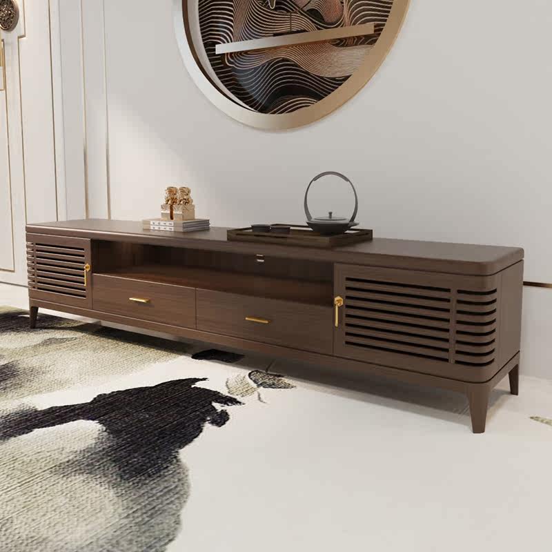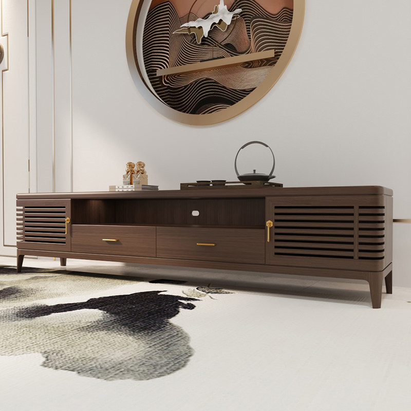 New Chinese TV Cabinet Modern Zen Imagery Storage Ground Cabinet Light Lavish Villa Hotel Solid Wood Living Room Short Cabinet Furniture Custom