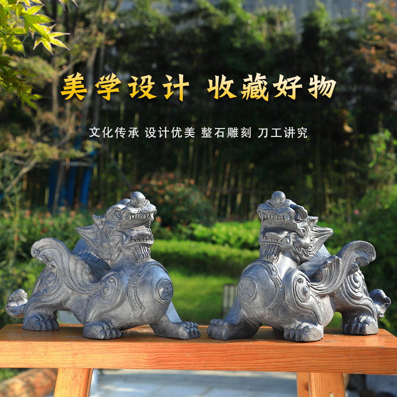 Stone sculpted green stone stone leopard A couple of household shops doorway to look at the door Picchu town house stone carvings leopard