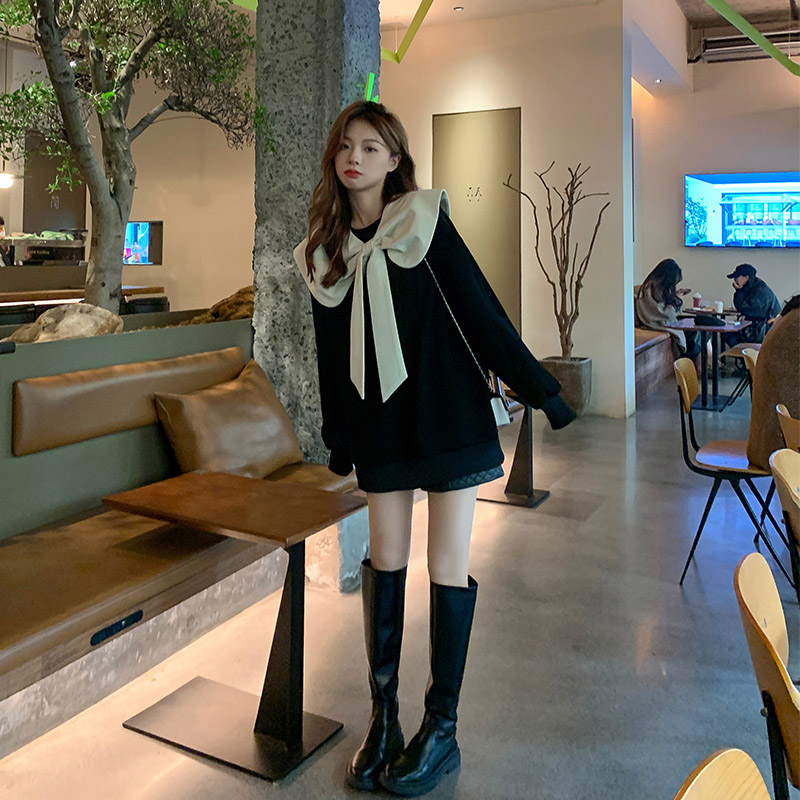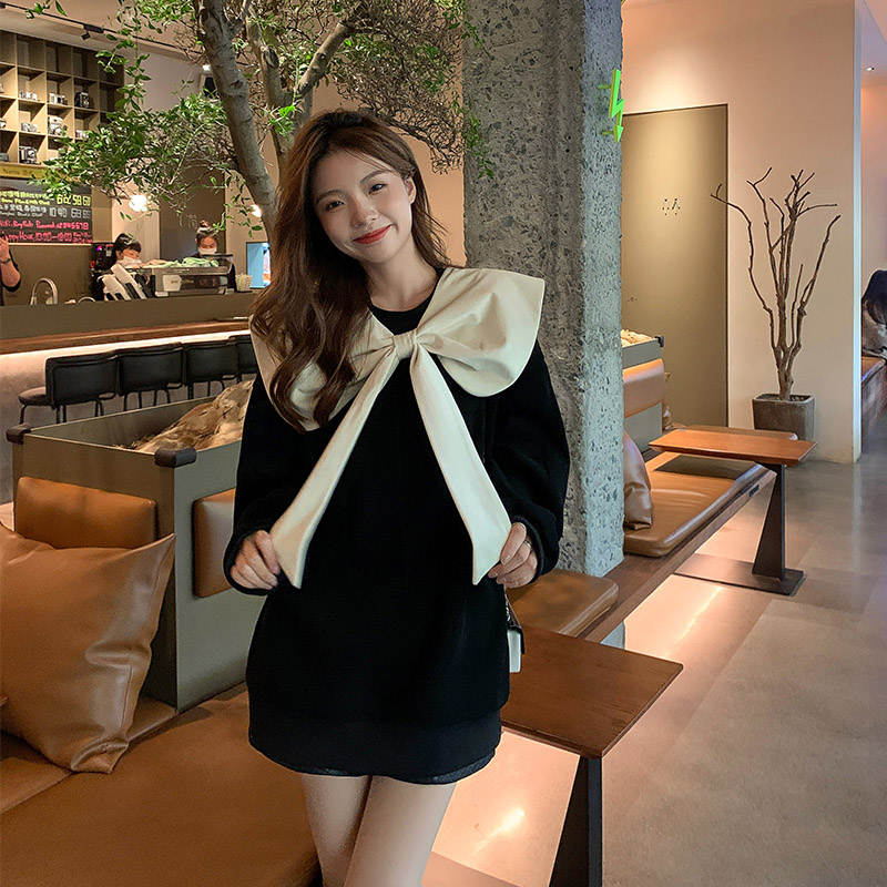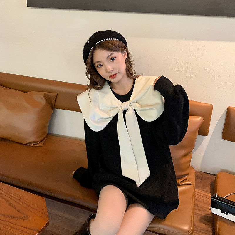 (Huchu Beautiful Butterfly Knot Sweatshirt) Lazy Wind Method Style Small Crowdblouse Butterfly Knot Loose Sweet and Wee Girl