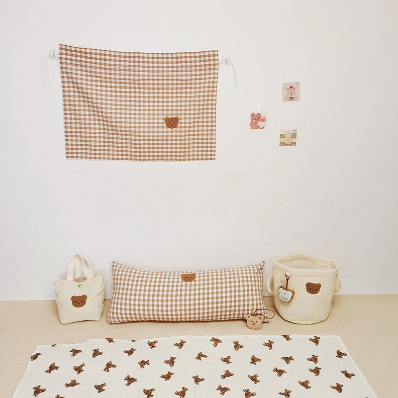 Cube (rectangular pillow) coffee plate bear (rectangular pillow) orange pink plate bear (rectangular pillow) blue gray plaid bear (cylindrical pillow) coffee plate orange powder