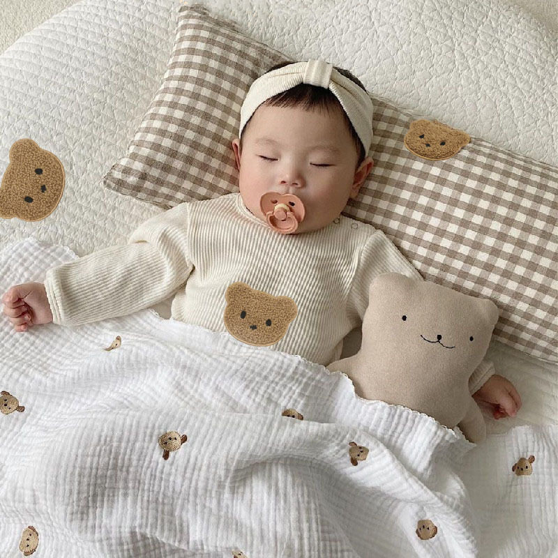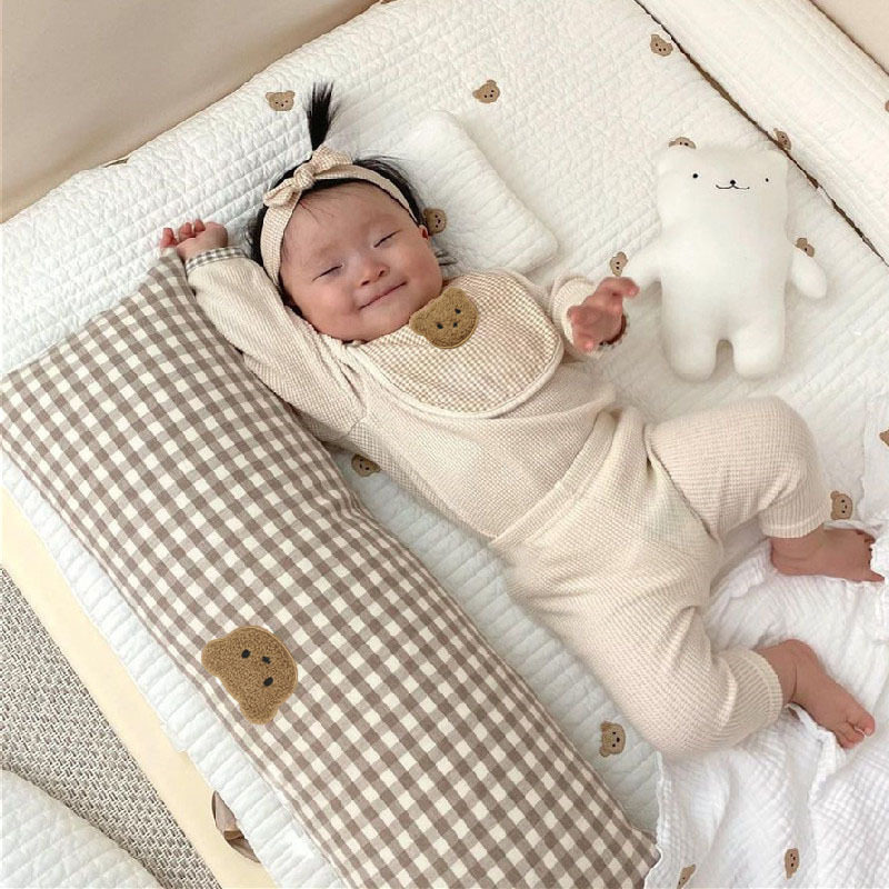 Korean in wind embroidered little bear plate children pillow on the pillow baby long pillow baby bed bedside collision prevention