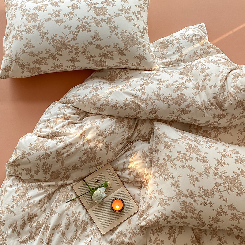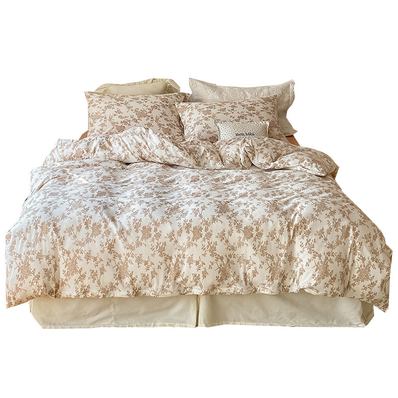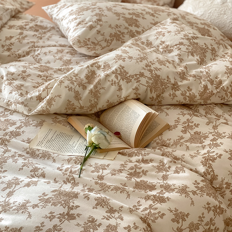 French vintage rustic tianzhu knit cotton four-piece set of pure cotton cotton nude sleeping duvet cover bed linen bedding