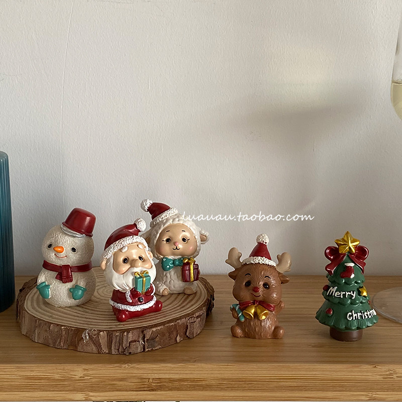 Lua cartoon cute Christmas mini lamb elk resin decoration snowman home desktop creative decoration