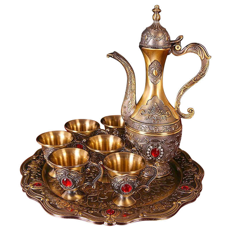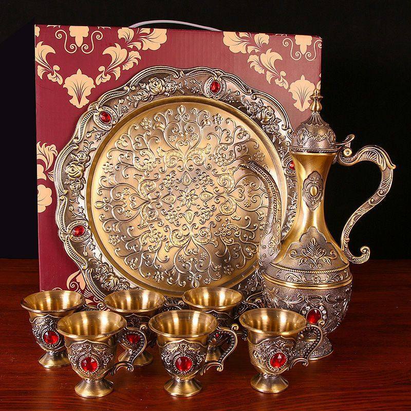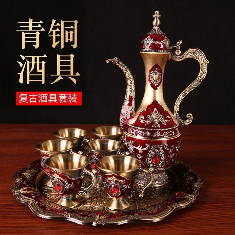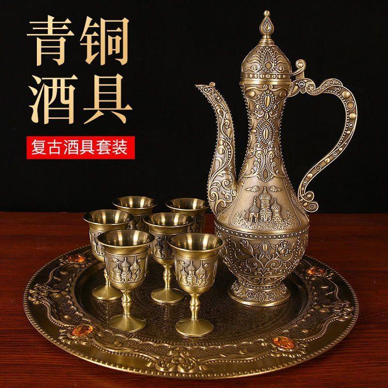 Bronze small pot belly wine set 8 pieces set Bronze red trumpet big belly style wine set 8 pieces TXX bronze castle pattern wine set 8 pieces (large size) TXX bronze rose pattern wine set 8 pieces (large size)