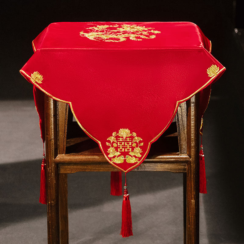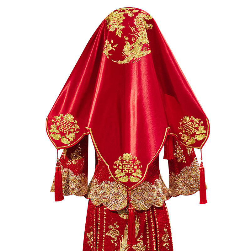 Bridal red hijab 2021 new Chinese style Xiuhe clothing retro red embroidered satin tassel hooded embroidered hipa