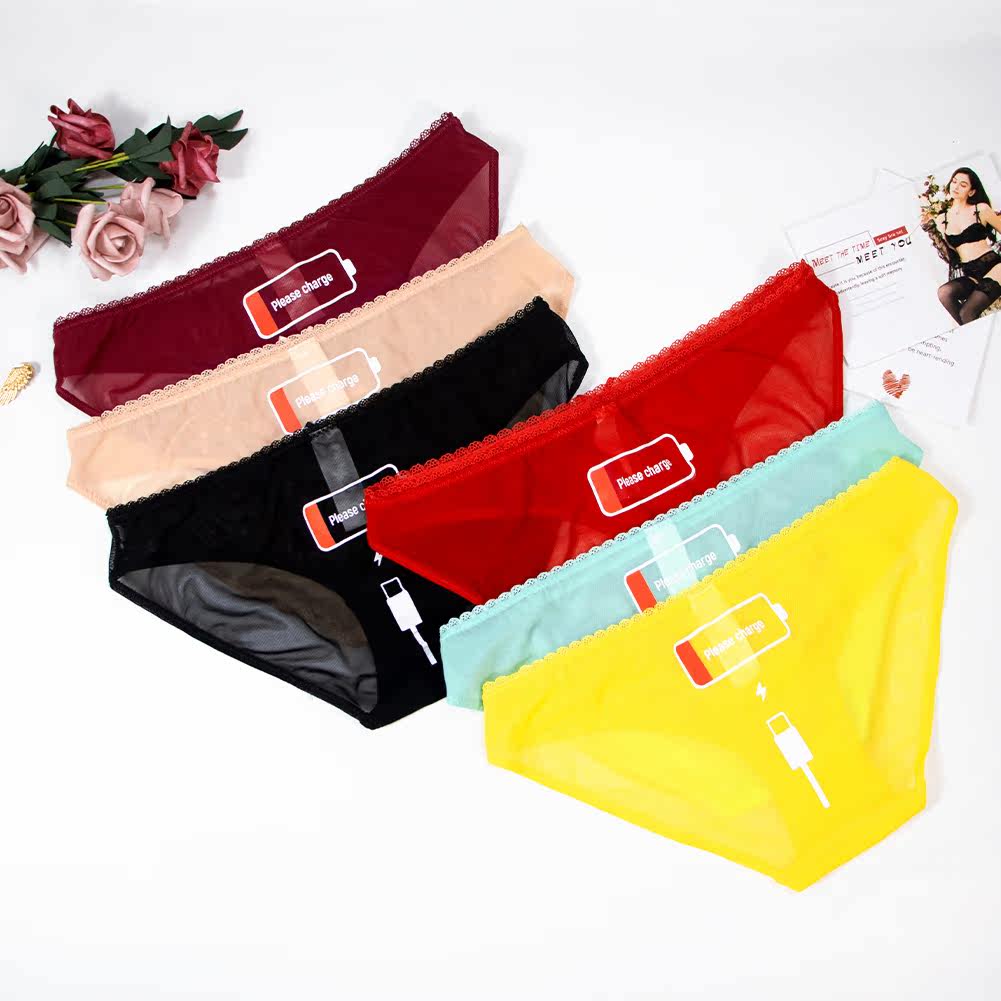 This life year big red underwear printing mesh lady ultra thin dry sexy triangles woman