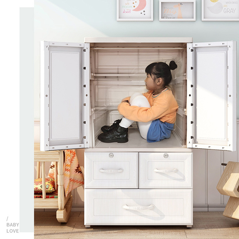 Simple wardrobe big number Cartoon plastic combined double door multilayer drawers storage containing cabinet Baby baby wardrobe