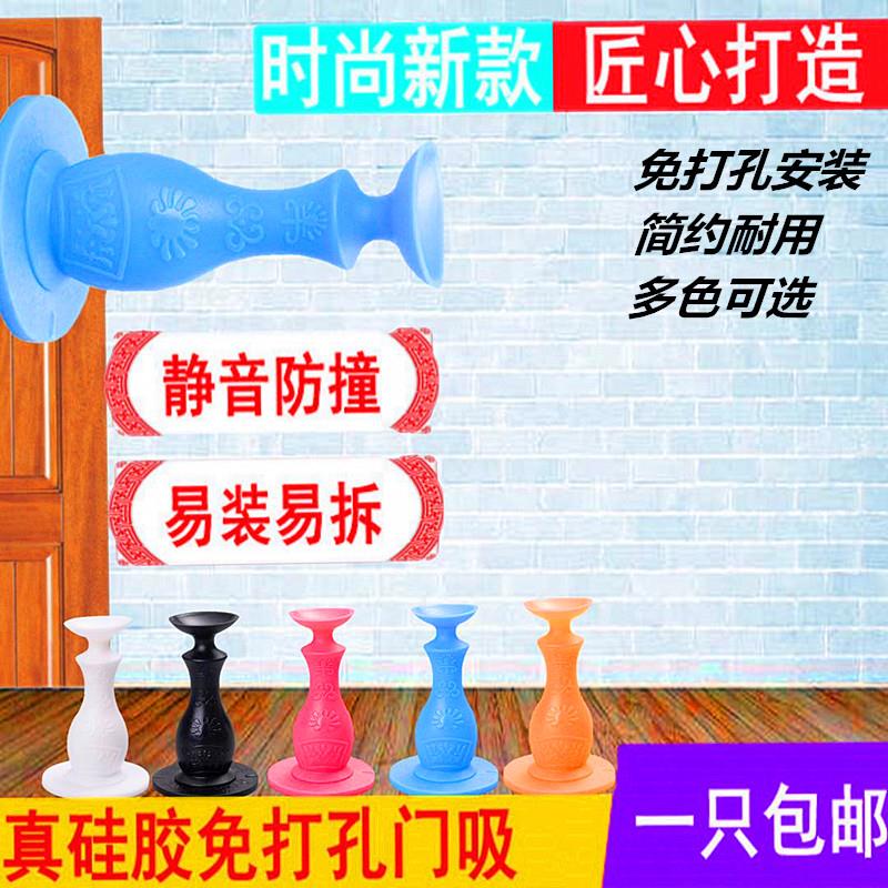 Spring door suction-free perforated silicone anti-collision lengthened strong suction door top toilet make-up room bedroom door touch silent door stopper