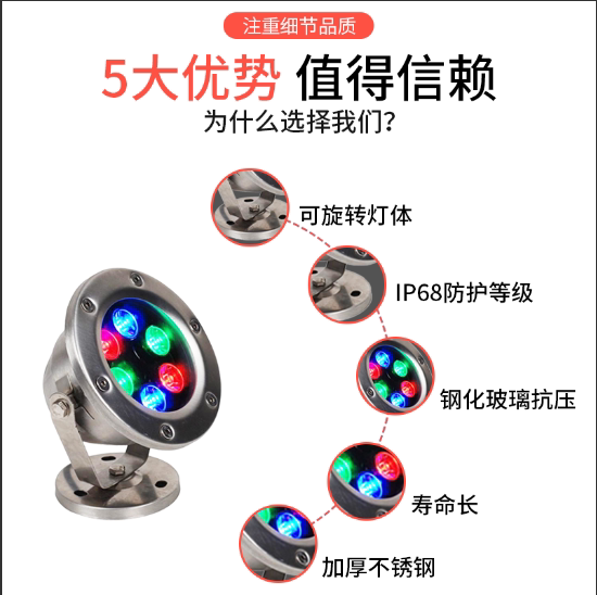 led underwater light waterproof spotlight modern colorful landscape light fish pond fish tank stainless steel fountain light low voltage 24v