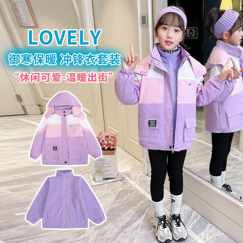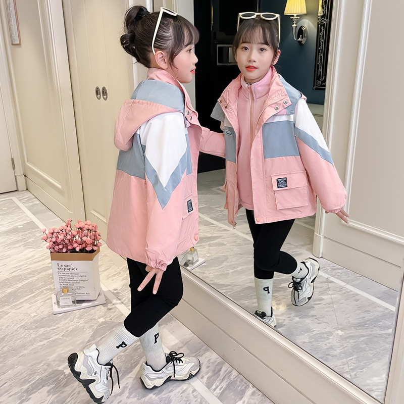 Girl Coats Autumn Winter 2021 New Foreign Pie Children Autumn Clothes Spring Autumn CUHK Children Can Detach Submachine Clothing Plus Suede Thickening