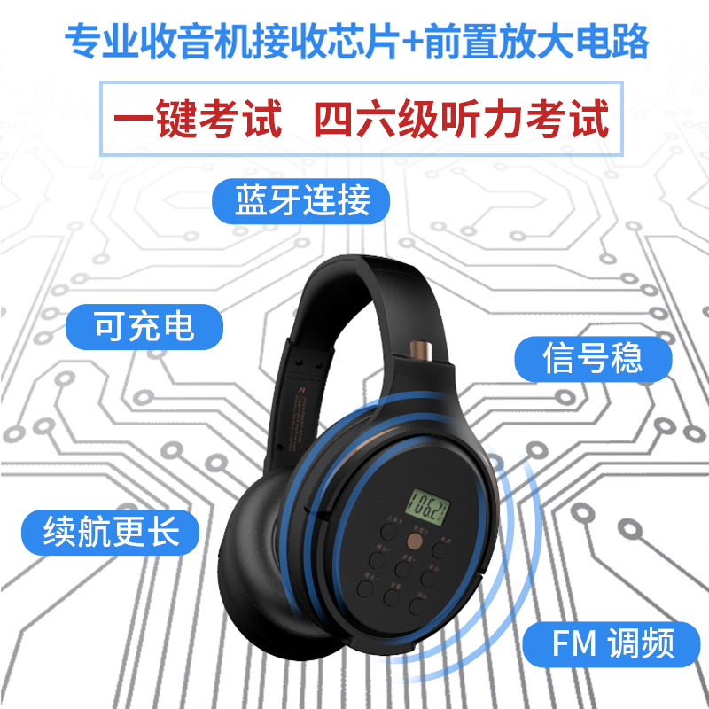 Electronic audio English level 4 or 6 listening headphones wearing bluetooth English test drop FM FM rechargeable radio headset