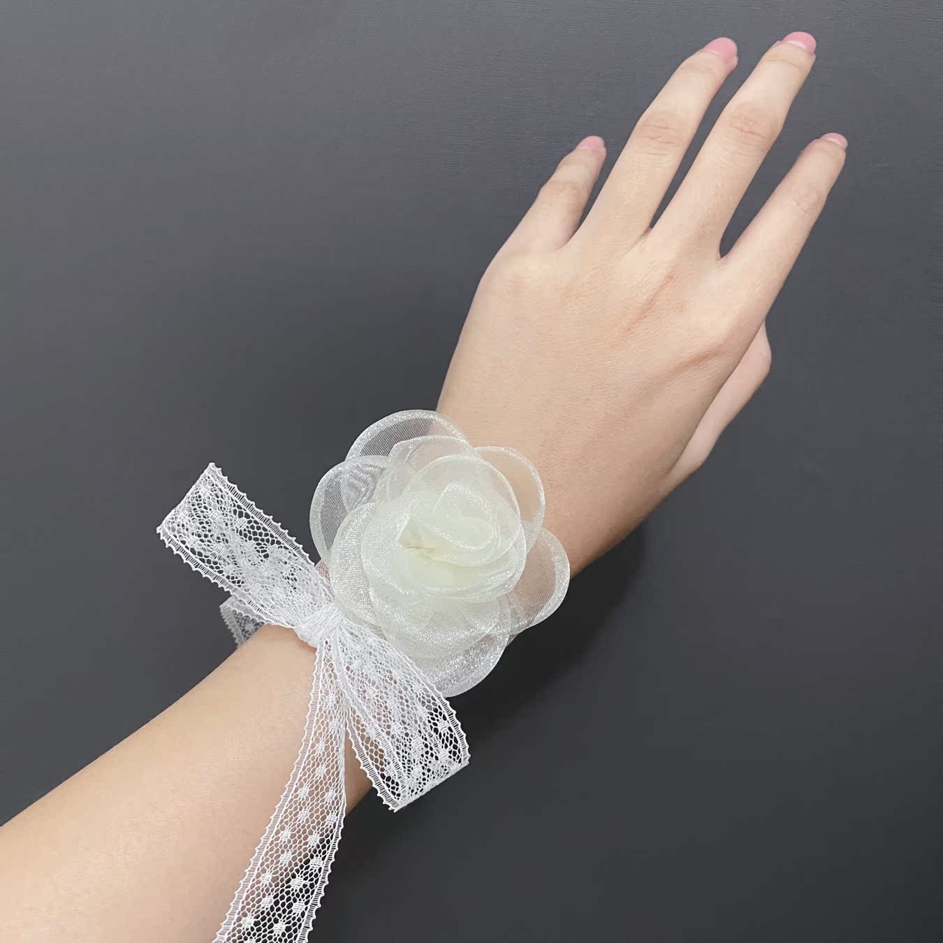 Rose wrist flower wedding bride sister party flash bride stage white beauty hand tea flower