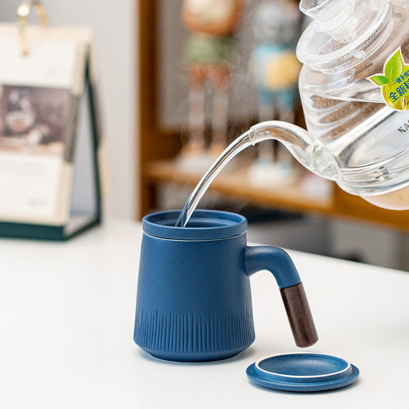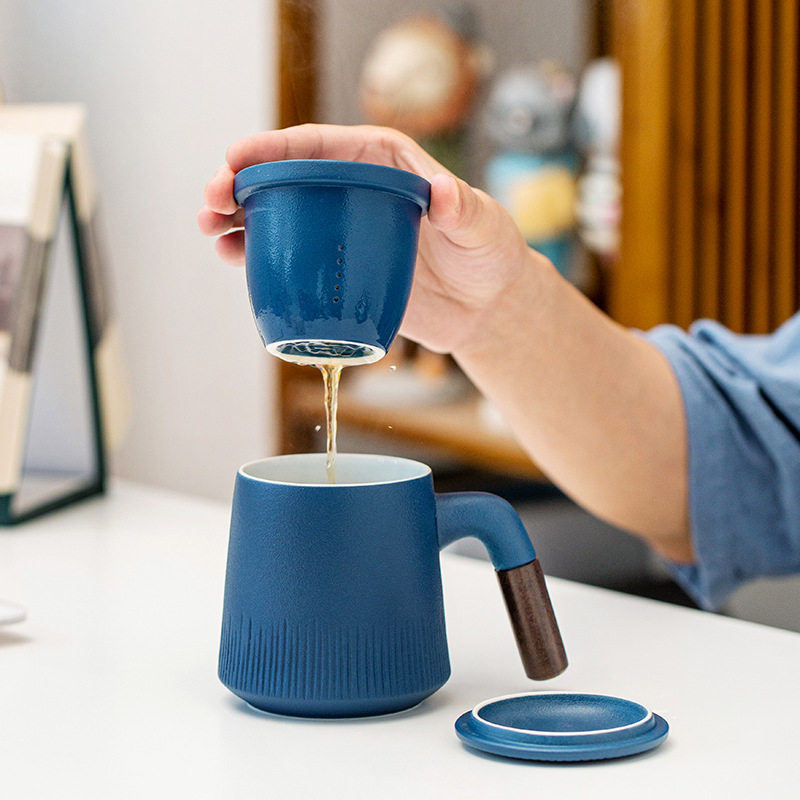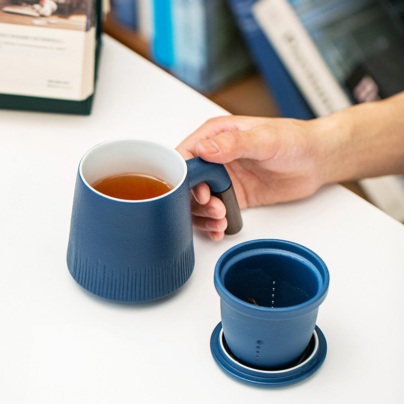 Ceramic office cup three pieces of coarse ceramic cup tea separation office with lid filter gift personal cup