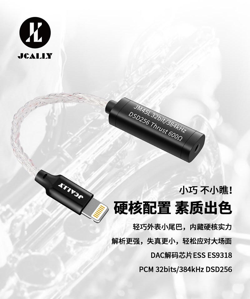 JCALLY Jieshi sound JM45L audio decoding adapter head Apple mobile phone Lighting turn 3 5 headphone jack