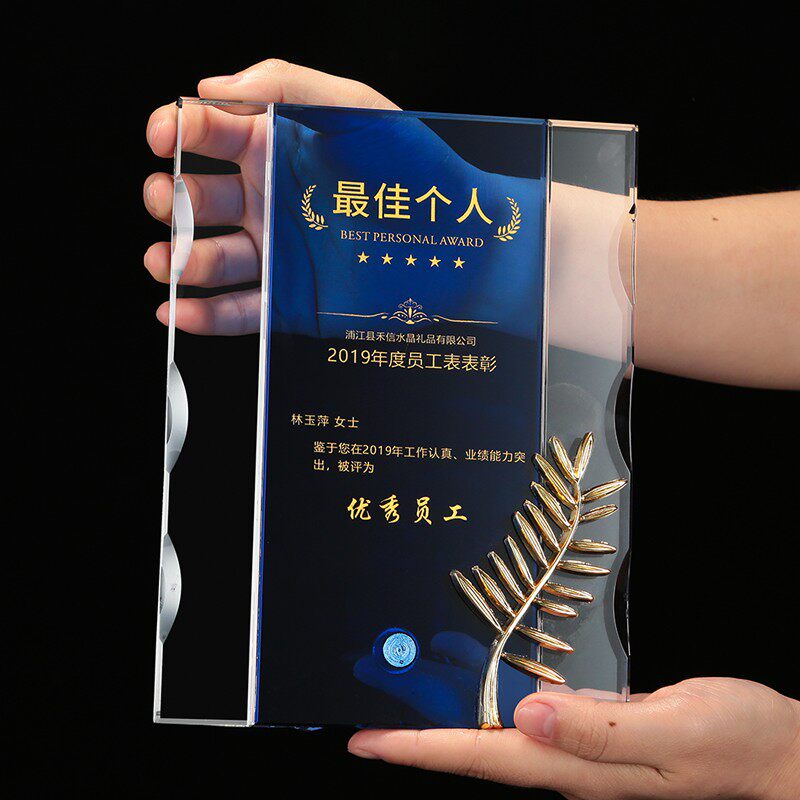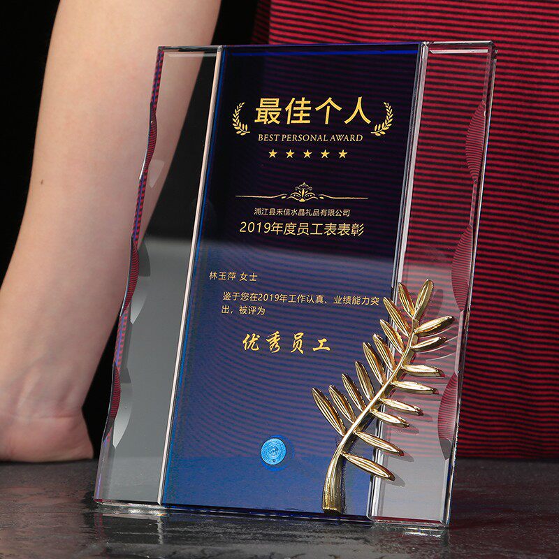 Golden Palm Crystal Medal Trophy for High-end Enterprise Commercial Agent Franchise Licensing Advanced Employee Medals