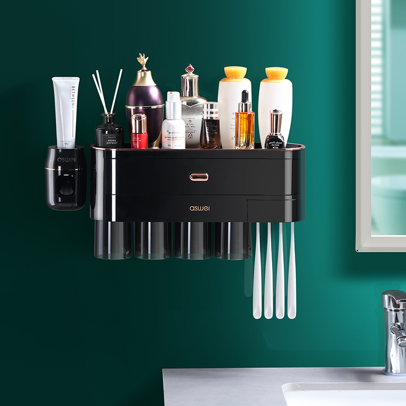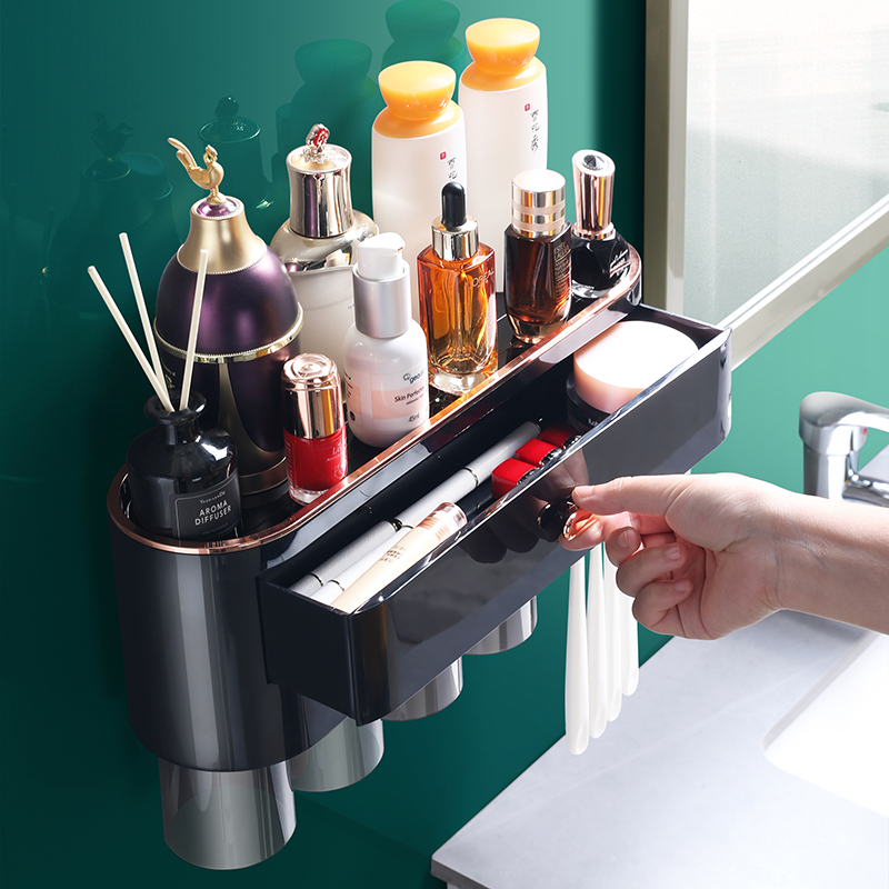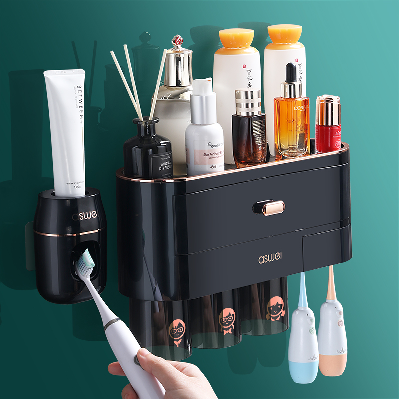 Black gold-two-cup toothbrush rack black gold-two-cup toothbrush holder black gold-three-cup toothbrush rack black gold-three-cup toothbrush rack crowding toothpaste device black gold-four-cup toothbrush rack black gold-four cups