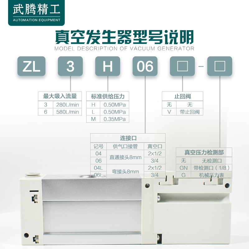 Pneumatic multi-stage vacuum generator ZL3H04-GN large flow negative pressure generator ZL6H04V-GN replaces SMC