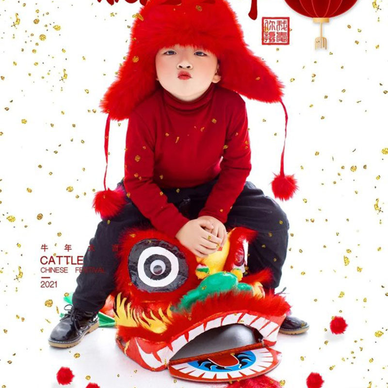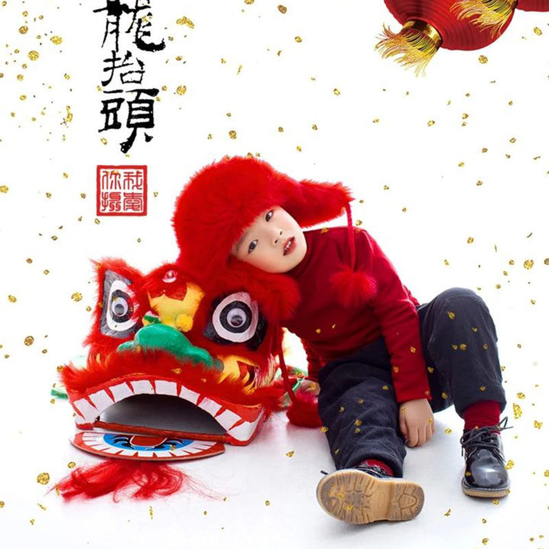 China Wind Festive Children Photography Props New Year Themed Photo Gallery Photo Styling Decorative Performance Lion's Head Swing