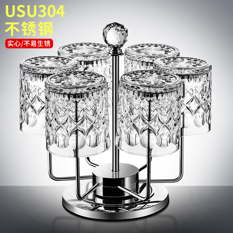 Stainless steel cup rack light luxury rotating upside down wine rack whisky rack drain rack Nordic style beer mug rack