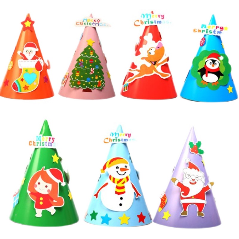 Christmas Gifts Children Handmade Material Christmas Hats Paper Sharp Corner Hats Handmade Diy Cartoon Hat Adornment