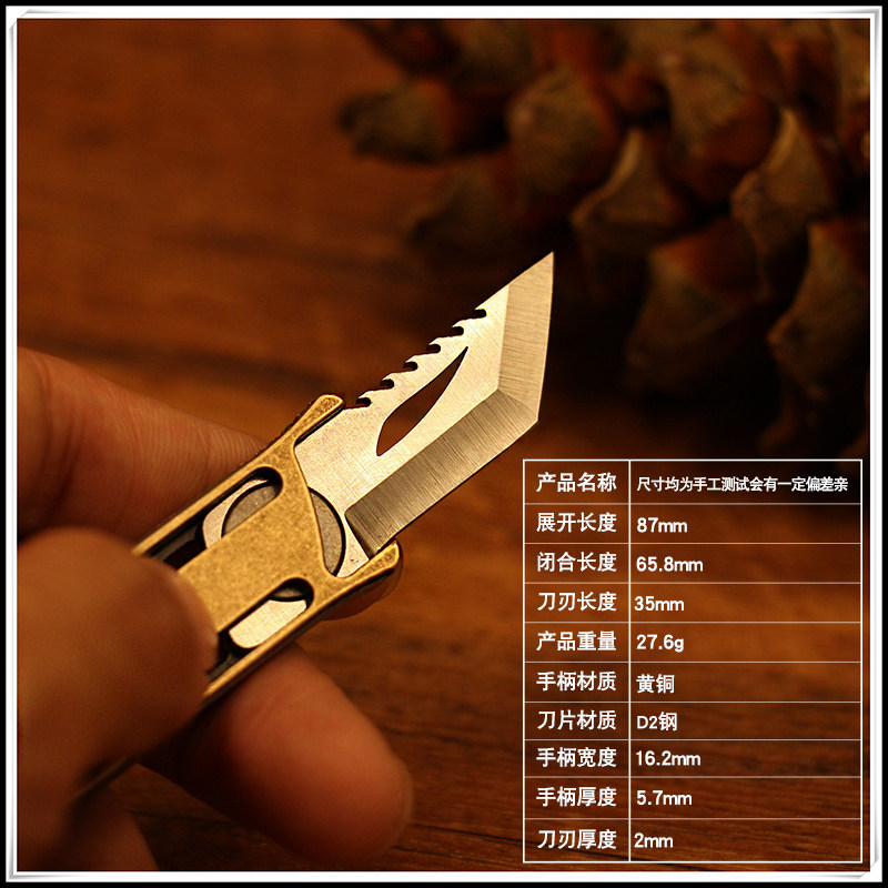 Outdoor D2 Mini small knife EDC sharp folding knife with portable anti-body knife brass small knife open delivery key clasp knife