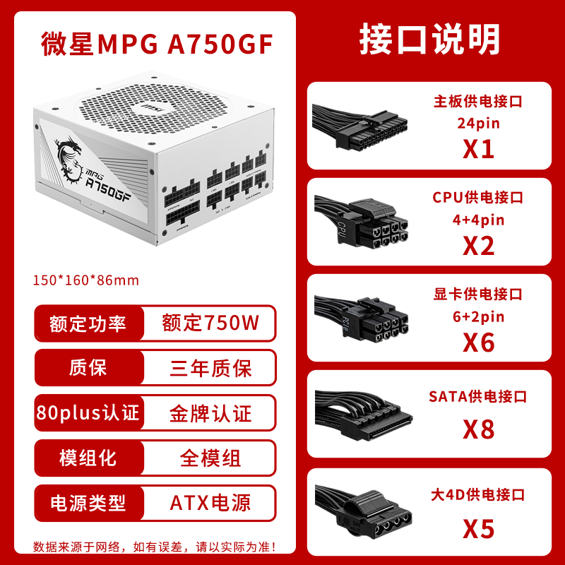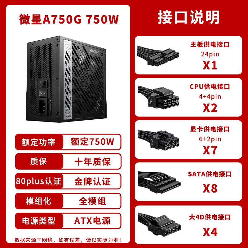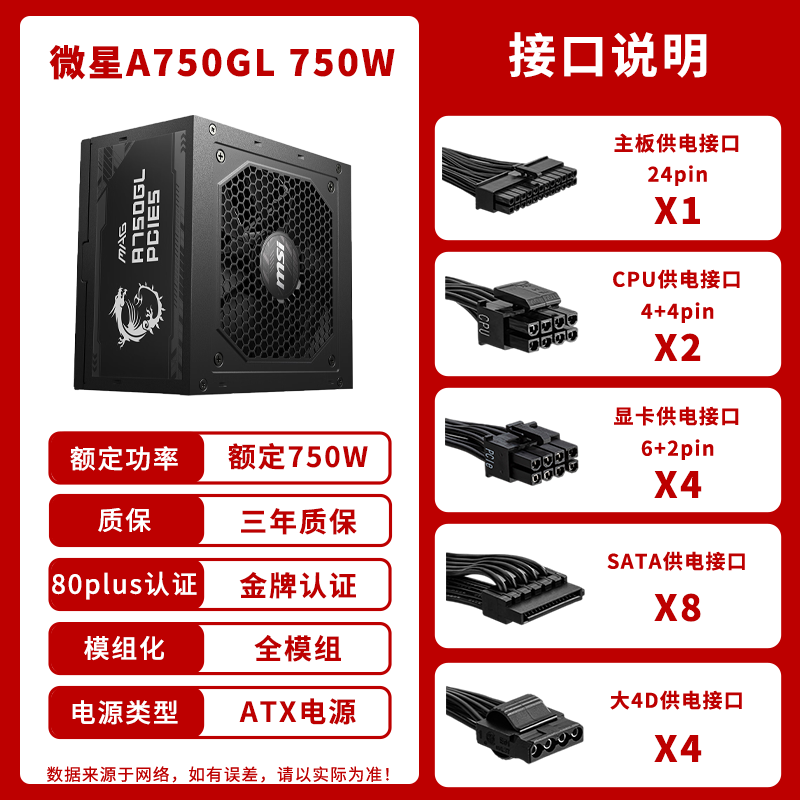 Microstar rated 350W 550W 550W 750W 750W 850W 850W ATX bronze medal power supply PCIE5 0-Taobao
