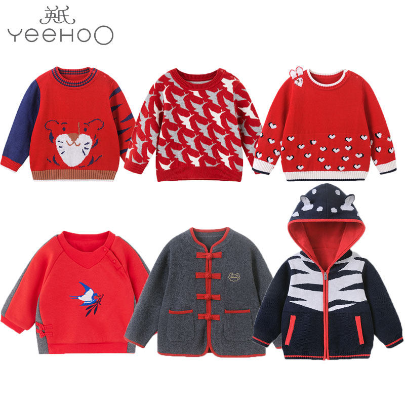 Inn's autumn and winter style male and female knitted sweatshirt infant warm vest baby round-led knit cardiovert suit