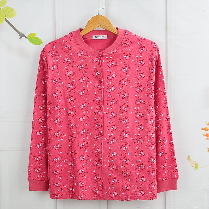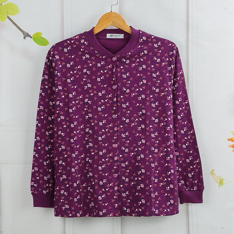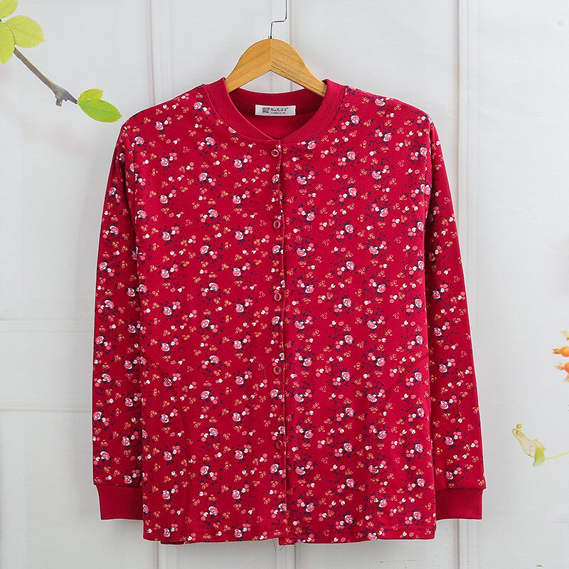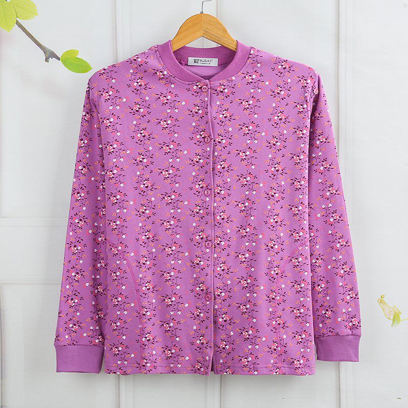 Pocket mid-aged ladies pure cotton autumn jersey cardiovert cardiovert lingerie tying up and fattening up the full cotton
