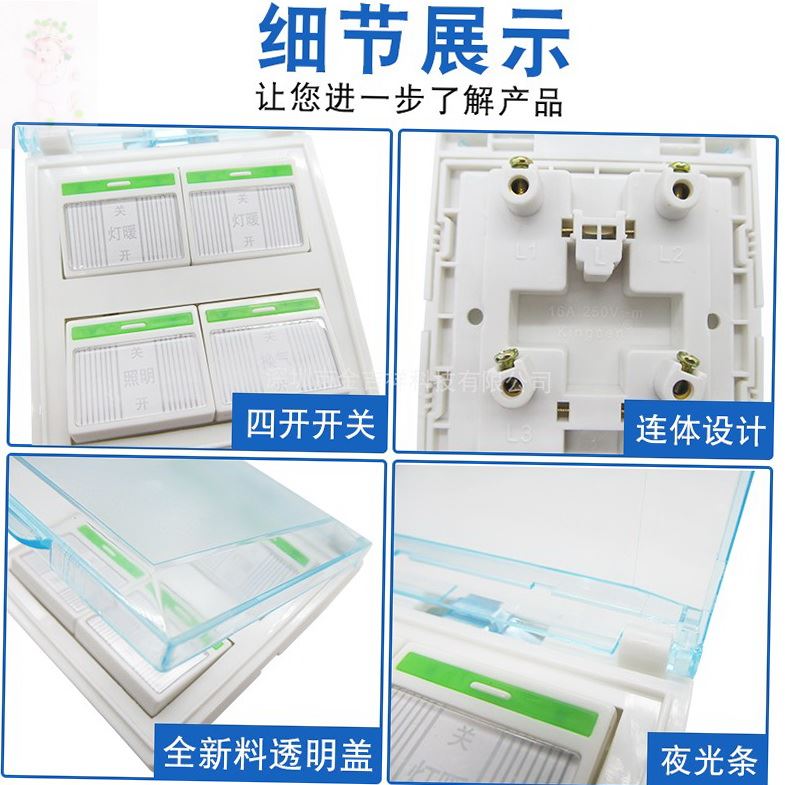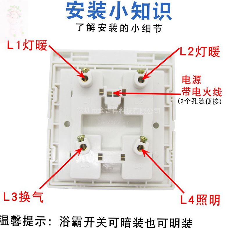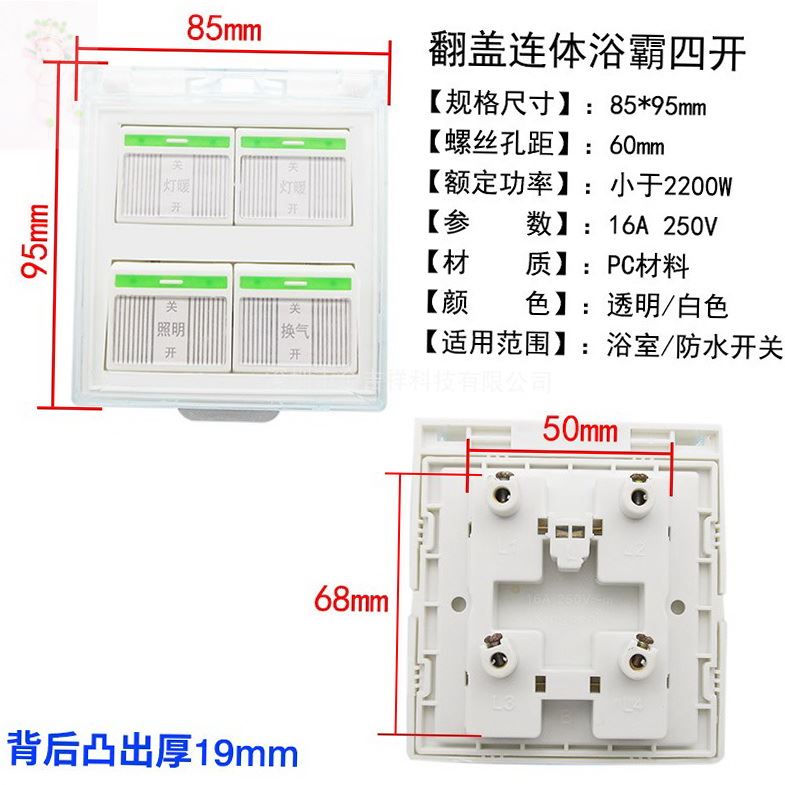 Bath accessories large switch button cosmetic room old - fashioned lamp - heating fan 4 in 1 switch 86 type waterproof cover