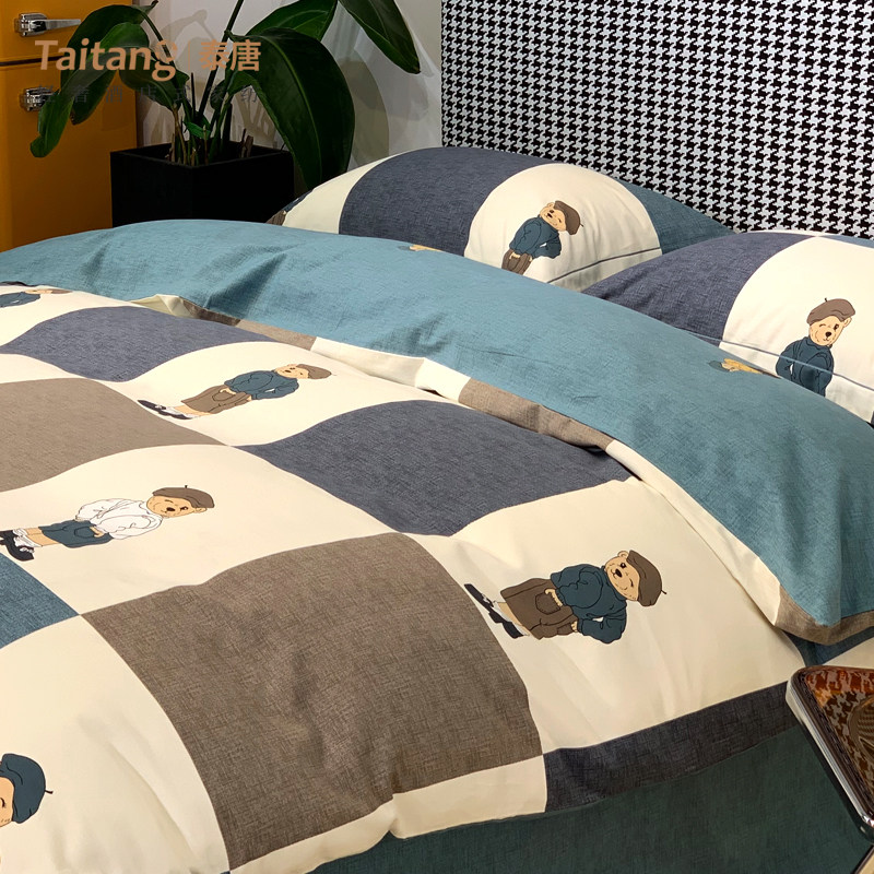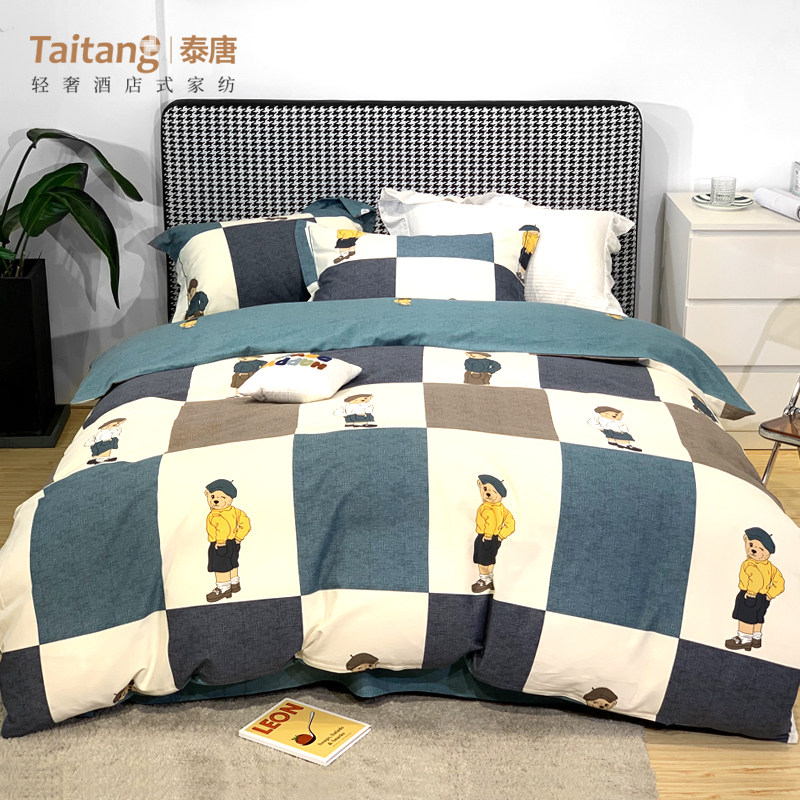 Pure cotton mill wool four pieces of Cartoon Thickened Pure Cotton Quilt Cover Bed Linen 2021 New Warm Brief Nordic Wind