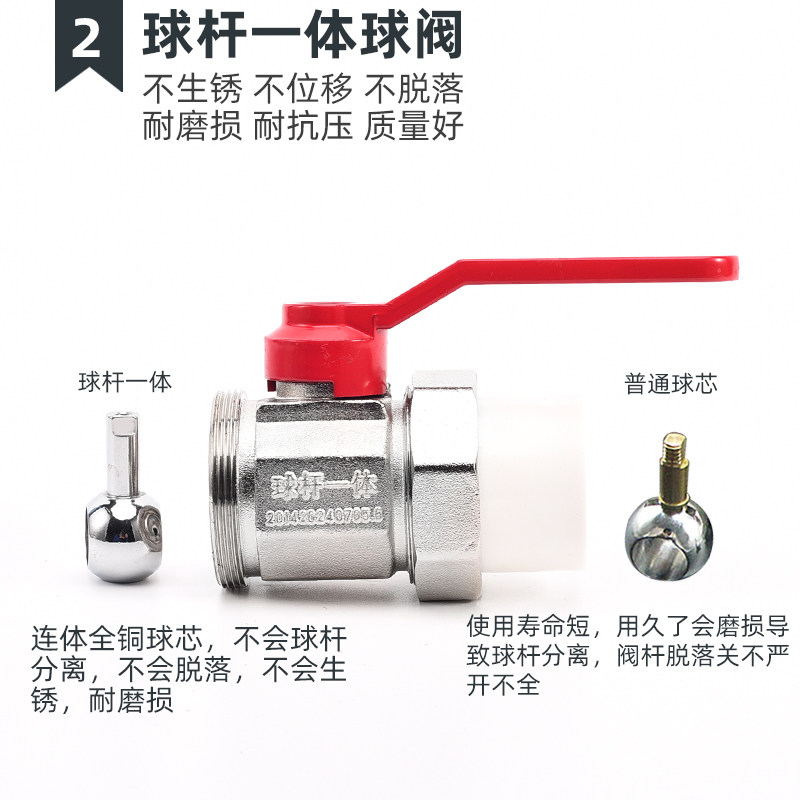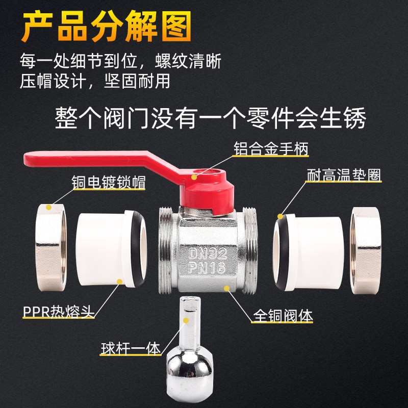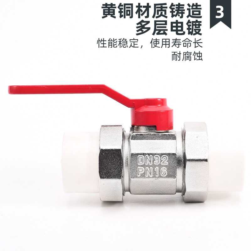 PPR water pipe full copper ball rod integrated ball valve 4 points 20 6 points 25 double live joint valve switch hot melt joint water valve
