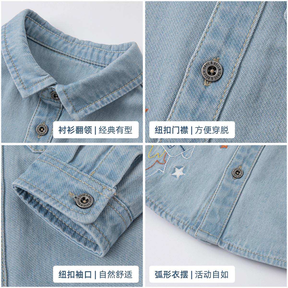 Davibella children's clothing pure cotton denim shirt 2022 spring autumn new children baby boy baby polo blouse