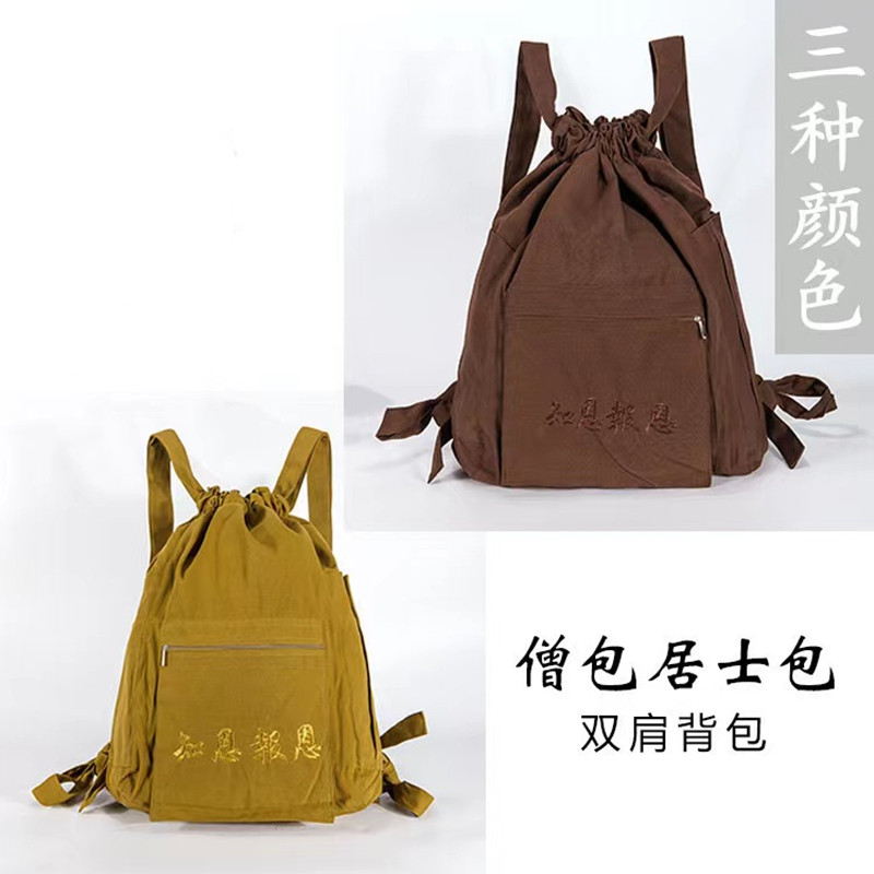 Monk shoulder bag monk bag layman canvas mountain bag men and women backpack worship Buddha meditation bag Buddha bag
