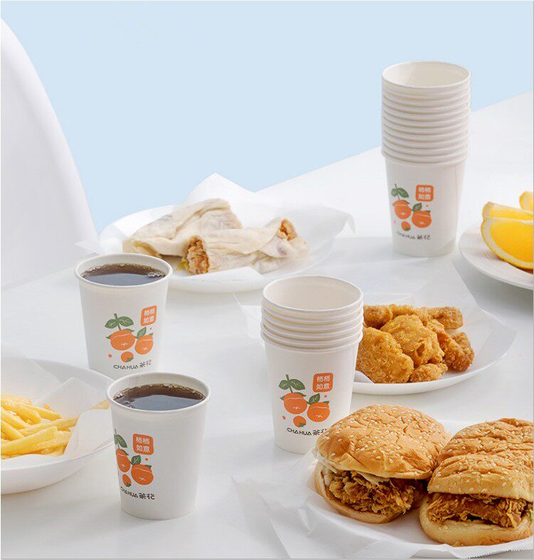 Camellia 218ML disposable paper cup household commercial thickened heat-resistant juice soy milk breakfast cup 307003