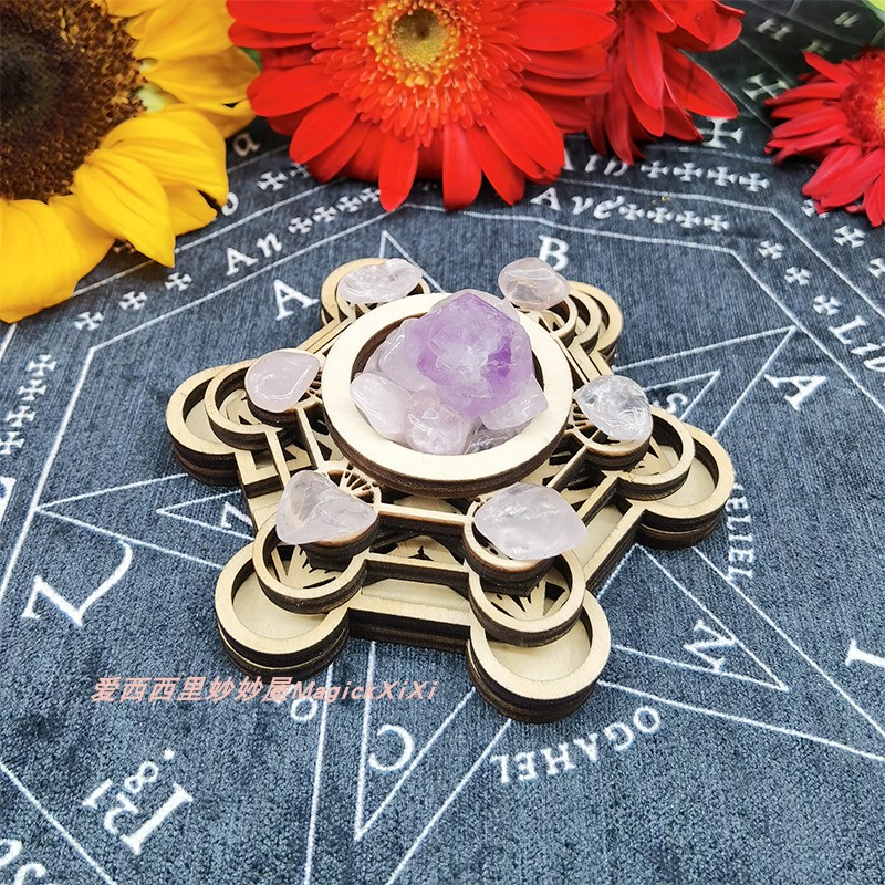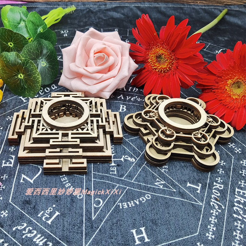 Woody Crystal Ball Base Eu Style Geometric Pattern McdaxSri Yantra Crystal Mesh Cup Wax Candle Holder